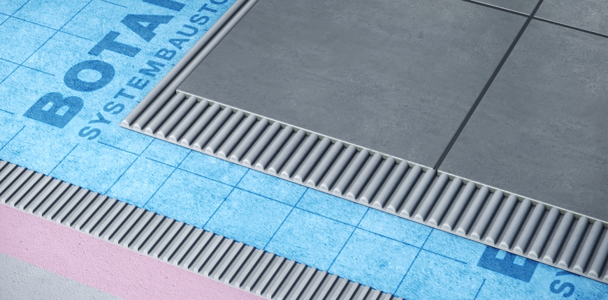 Do połączenia posadzki ze ścianą oraz uszczelnienia narożników służy taśma uszczelniająca BOTAMENT® SB 78, stanowiąca element systemu.