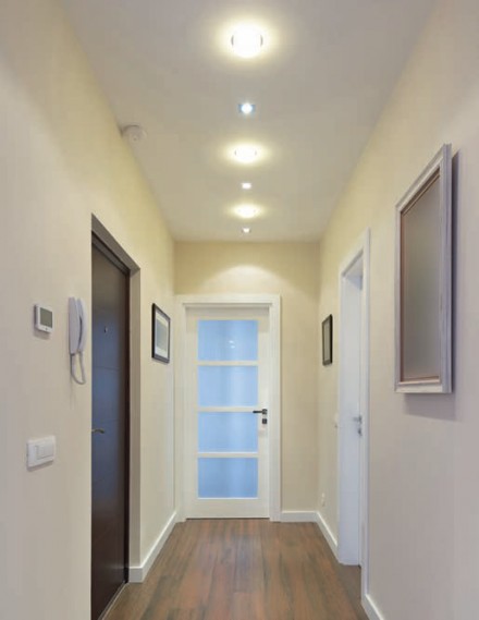 Oświetlenie szlaków komunikacyjnych ze względu na swoją specyfikę wymaga przemyślanego projektu. Trakty domowe są często długie, można z nich wejść do wielu pomieszczeń, a to sprawia, że zamiast jednego światła centralnie położonego na suficie lepiej zaplanować kilka punktów świetlnych. Często są one usytuowane tylko na ścianach, na wysokości typowej dla kinkietów lub u dołu ścian, dzięki temu podłoga na naszych codziennych trasach zostanie lepiej oświetlona. Myśląc o instalacji oświetleniowej tej przestrzeni, warto również zaprojektować większą liczbę łączników, które umożliwią nam włączenie i wyłączenie światła w kilku miejscach. Pamiętajmy, że łączniki światła powinny być zamontowane po tej samej stronie co klamka, jeśli więc jest ona z lewej strony, to włącznik powinien się również znajdować z tej strony. Łączniki najlepiej zaplanować na początku i końcu traktu na wyciągnięcie ręki, co znacznie ułatwi obsługę światła po wkroczeniu do przedpokoju czy korytarza. W wiatrołapie nie zapominajmy o montażu łącznika odpowiadającego za manewrowanie światłem zewnętrznym, przycisku do otwierania furtki czy manipulatora instalacji alarmowej. Wygodne użytkowanie zapewni ich montaż na wysokości 120-140 cm od podłogi. Do niektórych rodzajów źródeł światła niezbędny jest zasilacz, warto więc wcześniej zaplanować na niego dyskretne miejsce. Pamiętajmy, by w projekcie przedpokoju, holu czy korytarza uwzględnić montaż jednego gniazdka elektrycznego, czyli popularnego kontaktu – chociaż niektórzy zalecają w większych pomieszczeniach instalację nawet dwóch – jedno na 5 m². Najczęściej wykorzystujemy je podczas odkurzania.