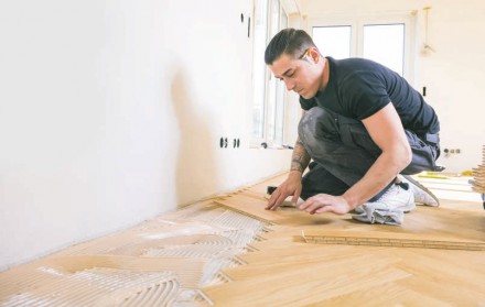 Parkiet dwuwarstwowy wymaga odpowiedniego przygotowania podłoża. Powinno być równe, czyste, mocne, suche i wolne od rys oraz spękań podłoża. Może to być podłoże cementowe, anhydrytowe, a także sklejka lub płyty wiórowe. Gdy jest nierówne, trzeba je wyrównać, stosując masę samopoziomującą. Konieczne jest także jego zagruntowanie, jednak wcześniej należy podłoże przeszlifować i odkurzyć, by usunąć mleczko anhydrytowe lub cementowe. Wilgotność podłoża gotowego do przyklejania klepek zależy od jego rodzaju – z jastrychu cementowego lub betonu powinna wynosić ≤ 2,0% CM, natomiast podkłady anhydrytowe powinny mieć ten parametr w granicach 0,5 CM. Drewno dwuwarstwowe układane na ogrzewaniu podłogowym powinno mieć podłoże o wilgotności ≤ 1,8% CM dla betonu bądź jastrychu cementowego oraz ≤ 0,3% CM w przypadku podkładów anhydrytowych. Do mocowania należy używać klejów przeznaczonych do parkietów dwuwarstwowych. Przed układaniem deski parkietowe przechowujemy w temperaturze 18-22°C i wilgotności 45-60%, w oryginalnych opakowaniach, które otwieramy tuż przed montażem. Elementów wcześniej nie należy klimatyzować. Parkiet powinno się układać po pomalowaniu ścian – należy traktować jego montaż jako finalny element wykończenia wnętrza. Jeśli konieczne będzie malowanie ścian, trzeba posadzkę zabezpieczyć papierem falistym i folią.