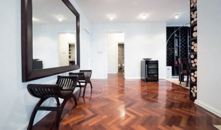 Zaletą szybkiego parkietu jest również możliwość zobaczenia już przy zakupie efektu finalnego. Posadzka często jest bowiem fabrycznie wykończona. Widzimy więc od razu, czy odpowiada nam bardziej wybrane przez nas drewno w wariancie lakierowanym czy olejowanym, błyszczące czy matowe, bielone, a może przyciemniane. Łatwiej więc będzie dopasować drewnianą okładzinę do naszych preferencji stylowych i aranżacyjnych. Finishparkiet wyróżnia też bogactwo gatunków drewna zastosowanego na licu oraz atrakcyjne wzornictwo. Na wierzchnią warstwę wykorzystuje się zarówno drewno krajowe, jak i egzotyczne. Do najczęściej wybieranych należy okładzina dębowa w różnych wariantach. Z gatunków rodzimych do efektownych należy także dwuwarstwowy parkiet jesionowy, grabowy lub orzechowy. Równie popularny jest wykonany z drewna egzotycznego – eleganckiego teku, miodowego merbau czy klimatycznego wenge. Drewno może być szczotkowane, co daje efekt postarzanej podłogi z podkreślonym usłojeniem drewna i jego strukturą. Warto wybrać parkiet fazowany czterostronnie, który dzięki załamaniu krawędzi ze wszystkich stron nadaje podłodze wyrazisty charakter. Ten rodzaj obróbki doskonale uwypukla wykończenie parkietu olejem lub olejowoskiem. Deszczułki mogą być bejcowane, co pozwala nam uzyskać pożądaną barwę drewna, jednak należy się liczyć z tym, że gdy będziemy przeprowadzać remont, to podczas cyklinowania drewno powróci do wyjściowego koloru. Parkiety dwuwarstwowe wykonuje się także z warstwą licową z thermodrewna. Dzięki czemu uzyskujemy materiał nie tylko efektowny wizualnie, ale również o doskonałych parametrach technicznych. Do wyjątkowo dekoracyjnych należy też finishparkiet z drewna wędzonego. Podczas tego procesu chemicznego drewno ciemnieje, a jego barwa zmienia się w całym przekroju elementu – podobnie jak w przypadku obróbki termicznej.