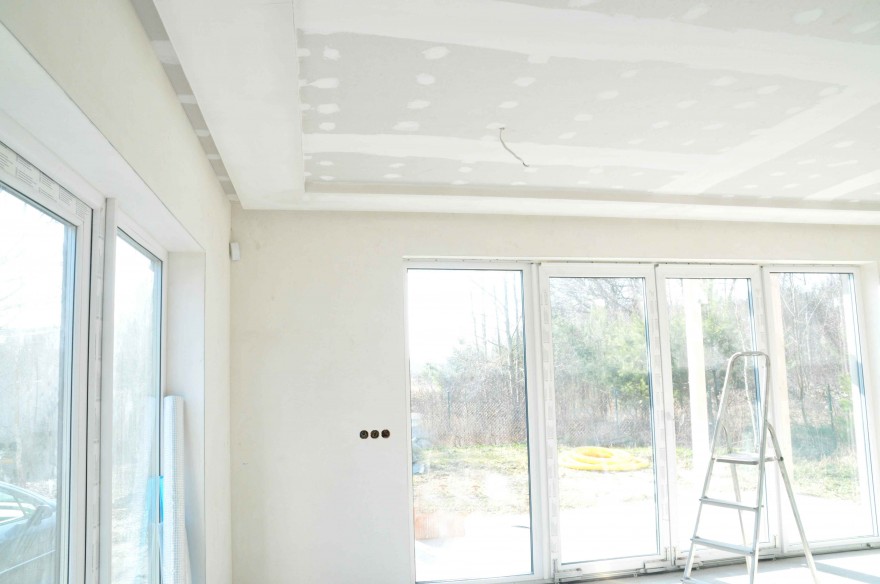 Tynk najwygodniej nakładać agregatem, ale można to tego celu wykorzystać również pacę z nierdzewnego metalu. Podczas pracy musimy pilnować odpowiedniego wypoziomowania. Maksymalna grubość zaprawy tynkarskiej to 30 mm. Następnie wstępnie wyrównujemy tynkowaną powierzchnię. Zaciąganie przeprowadzamy od razu po nałożeniu tynku – łatę tynkarską typu H przeciągamy w różnych kierunkach. Gdy tynk lekko zwiąże, wyrównujemy powierzchnię – łatą trapezową usuwamy wszystkie wgłębienia i nierówności. Ostatni etap to gładzenie. Szpachlą powierzchniową likwidujemy drobne wgłębienia i rysy. Zwilżamy powierzchnię i delikatnie przecieramy ją pacą gąbkową. Na ścianach po kilku chwilach powinno pojawić się mleczko gipsowe – po jego zmatowieniu, kończymy proces wygładzania. Mleczko gipsowe pomoże nam w usunięciu delikatnych wgłębień i uzyskaniu idealnie gładkiej powierzchni.