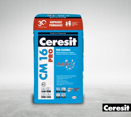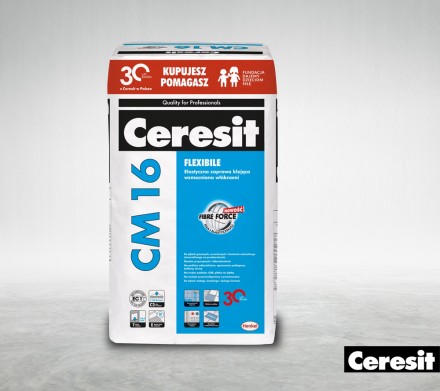 Ceresit CM 16 PRO to klej do zadań specjalnych, który można zastosować na zewnątrz i wewnątrz. Uzyskiwana elastyczność pozwala wykorzystać masę jako klej do płytek wielkoformatowych. Jego właściwości wykorzystywane są również przy wykańczaniu łazienek czy pomieszczeń mokrych. Klej znajduje zastosowanie przy powierzchniach o znacznym ruchu jak miejsca publiczne czy ciągi komunikacyjne.
